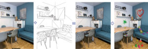 Therefore, we have decided that further work in the project will be continued on iOS devices where ARKit and LiDAR are available. An extremely important functionality that we must test is the dynamic building and synchronisation of the mesh-collider based on the data received from several simultaneously operating devices connected to the game session. Figure 1 shows the steps of building a collision mask based on the surrounding environment.