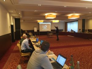 The CHARITY project meeting in Heidelberg, Germany on 14-15 October 2021 was the first in-person project meeting organised by Eurescom since the Corona pandemic spread across Europe more than 1.5 years earlier. It was also the first in-person encounter of the CHARITY partners, 9 months after the project had started. The photo shows Antonis Protopsaltis from ORamaVR demonstrating CHARITY’s virtual-reality based medical training use case.